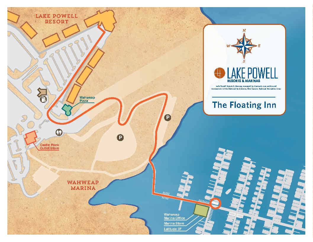 Check-in for your Floating Inn stay will take place at Lake Powell Resort between 2:00 PM and 5:00 PM local time. Porter service & boat walk-through will be provided while the Wahweap Marina Office is open, from 9:00 AM - 4:00 PM daily.