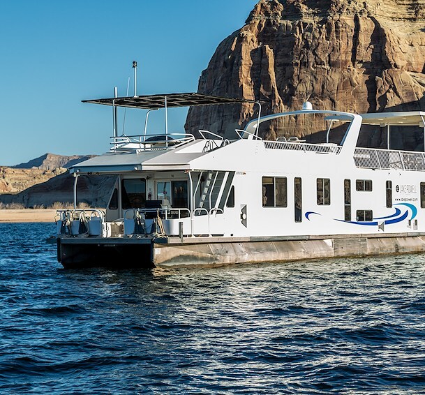 Experience the best of both adventure and comfort aboard a houseboat at Lake Powell! Enjoy all the amenities of home—cozy beds, spacious living areas, a fully equipped kitchen, and—all while surrounded by breathtaking views. Even first-time boaters can easily pilot a houseboat after a quick lesson from our expert staff. Once you're underway, explore nearly 2,000 miles of shoreline, including 96 major side canyons, as you navigate one of the largest man-made reservoirs in the country.
